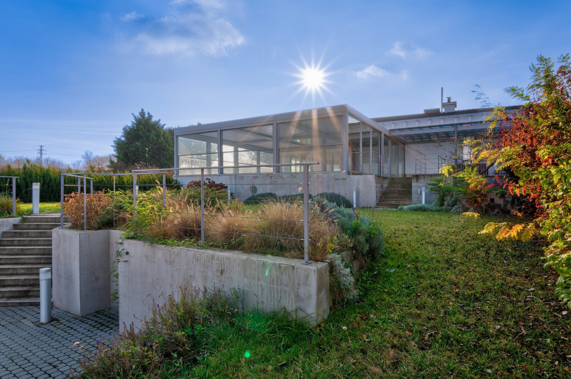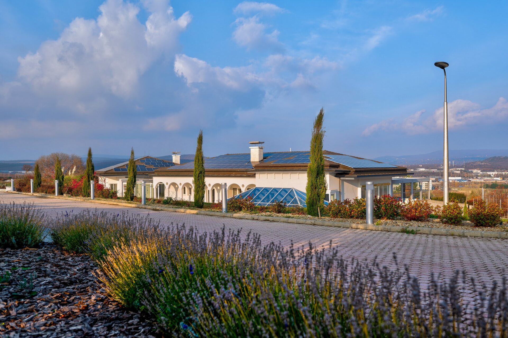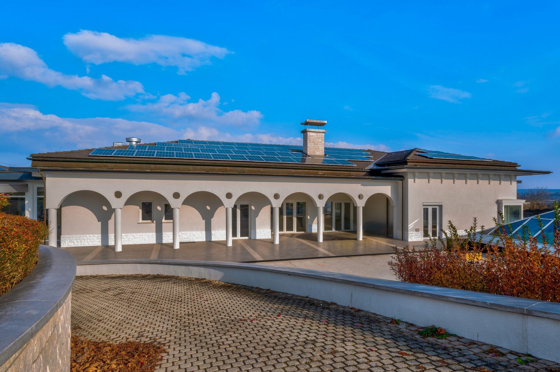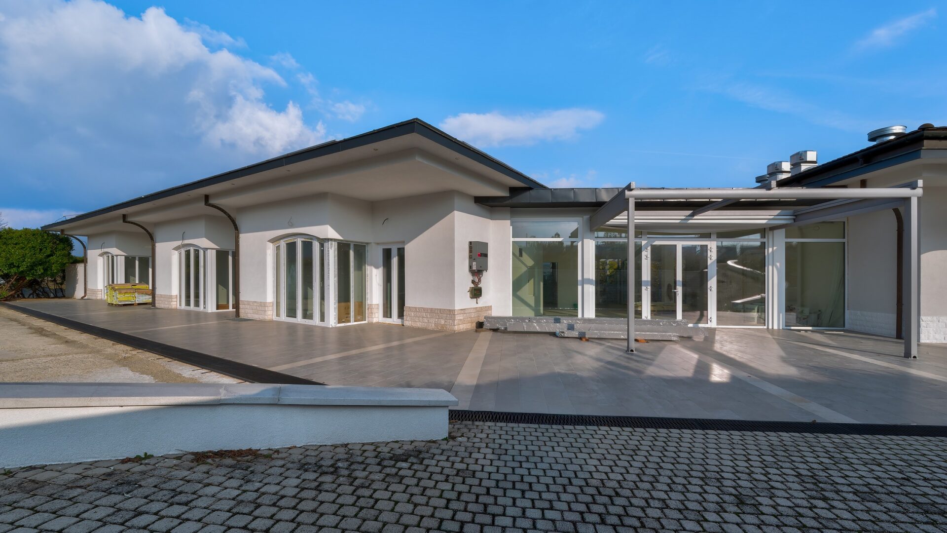 A villa 2002-ben épült, a teljes felújítása 2020-ban kezdődött, jelenleg az utolsó fázisnál tart. A főfalakon kívül minden újra lett építve, a teljes erős- és gyengeáramú vezetékrendszer és a vízvezetékrendszer cserélve lett, a fűtésrendszerben is két új, nagy teljesítményű gázkazán telepítése történt. A ház tetején 52 kW teljesítményű napelemrendszer termel áramot, de alapesetben is 3 x 165 A áramellátás van biztosítva, jelenleg folyik a H-tarifa telepítése a hőszivattyúkhoz. A gázellátás jelenleg két földalatti, telepített gáztartályból biztosított, de bármikor át lehet állni vezetékes gázellátásra, a vezeték vége a birtokon belül, a gáztartályok mellett található.