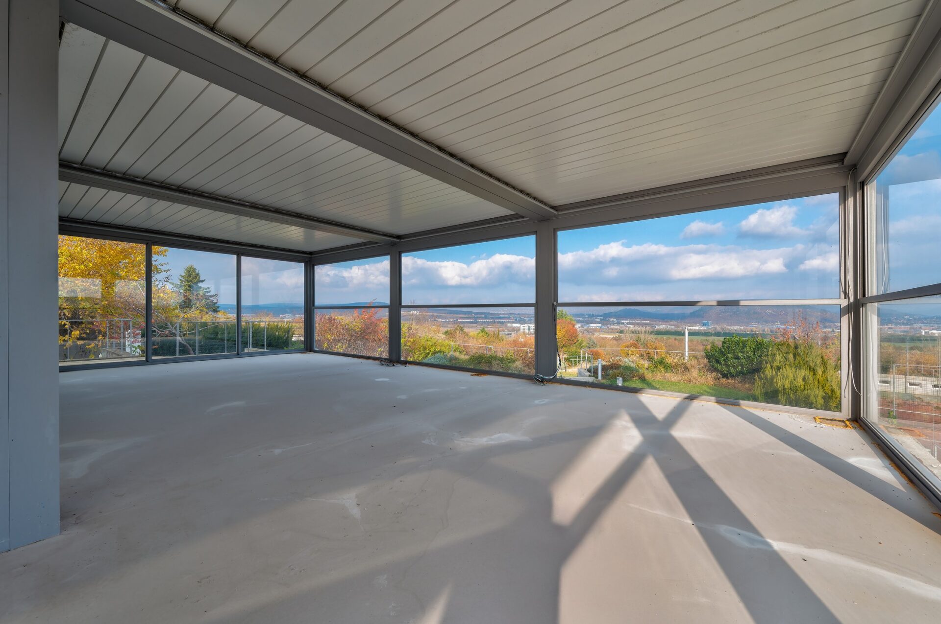 A felső szinten lévő 450 nm-es rendezvényteremből, valamint a hozzá kapcsolódó 120 nm-es, eltolható tetejű teraszról csodálatos panoráma nyílik a környékre. A teremben speciális effektekre alkalmas fénytechnika, valamint konferenciák megrendezéséhez szükséges vezetékrendszer került kialakításra. Hőcserélős szellőztető rendszer és Loxone automatika biztosítja a tiszta levegőt nagy létszámú rendezvények esetén.